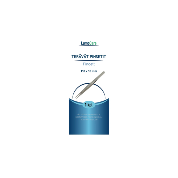 Lumocare terävät pinsetit 10mm x 110mm 1 kpl